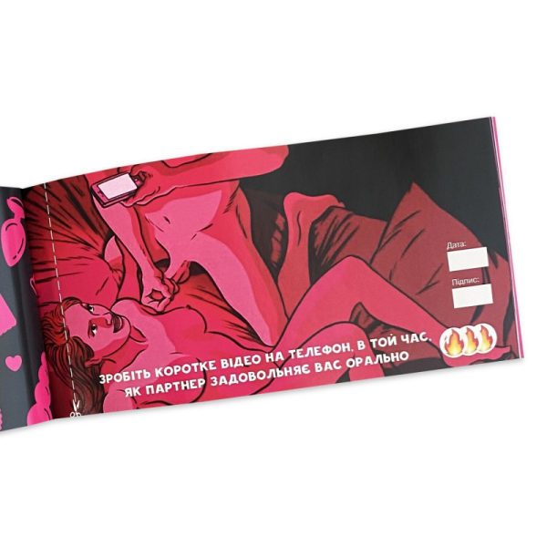 З “Чековою книжкою SEX бажань – Новий рівень” (50 чеків) Ви отримаєте можливість реалізувати найсміливіші фантазії, подарувати один одному нові враження та стан. У книзі Ви знайдете: